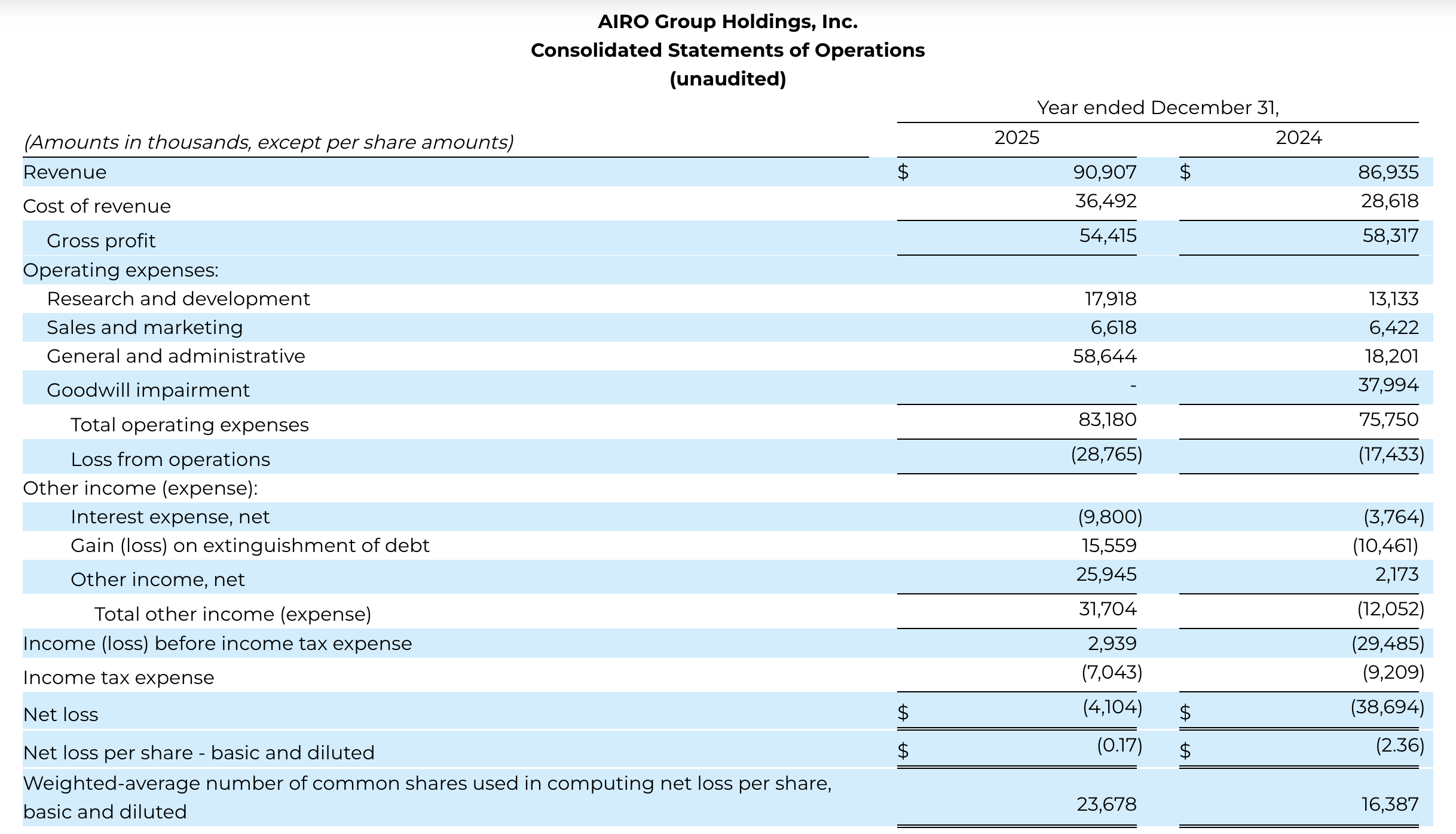 For the full year 2025, revenue totaled $90.9 million, compared to $86.9 million in 2024 driven primarily by the Drones segment, which represented approximately 87.0% of total revenue in 2025. The Company’s revenue profile continues to reflect strong demand for its drone platforms and the central role of the Drones segment in AIRO’s growth strategy.